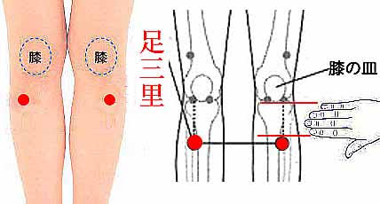 「 足三里 」・・・膝のお皿の外側から指4本分下がったところ
