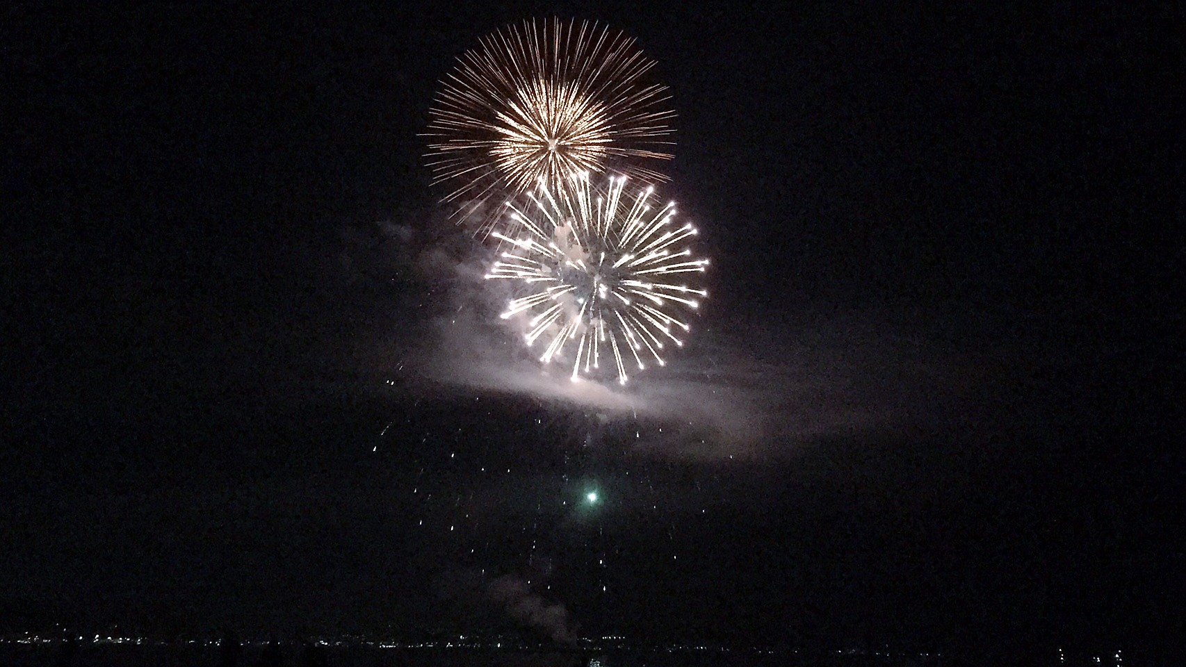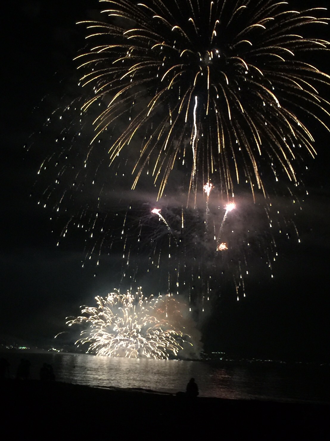 海に映る花火がとてもきれいです
