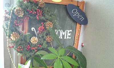 ちなみに手作りリースは玄関前の看板にかかってます