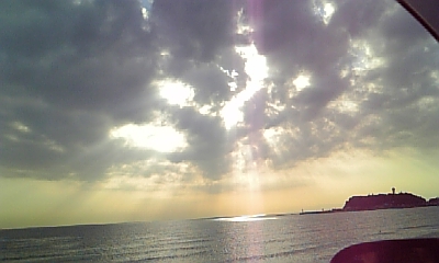帰り道・・・海に光のカーテン